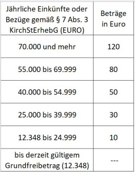 Das Kirchgeld verbleibt der Ortskirchengemeinde. Es wird neben den Kirchenumlagen (Kirchenlohn- und Kircheneinkommensteuer, Kirchenkapitalertragssteuer, Kirchengrundsteuer) und ggf. neben dem besonderen Kirchgeld in glaubensverschiedener Ehe erhoben, die der Evangelisch-Lutherischen Kirche in Bayern zufließen. Gesetzliche Grundlage für die Erhebung des Kirchgeldes ist das staatliche Kirchensteuergesetz (KirchStG) in der Fassung der Bekanntmachung vom 21.11.1994 (GVBI S. 1026), zuletzt geändert durch Gesetz vom 22.12.2008 (GVBI S. 973), und das Kirchensteuererhebungsgesetz vom 9.12.2002 (KABI 2003, S. 19) sowie die Ausführungsverordnung zum Kirchensteuererhebungs-gesetz vom 15.10.2003 (KABl S. 306). Wir sind gerne bereit, Ihnen auf Anforderung die entsprechen-den rechtlichen Bestimmungen zuzusenden. Sie können auch im Kirchengemeindeamt der Evang.-Luth. Gesamtkirchengemeinde bzw. im Pfarramt Ihrer Kirchengemeinde eingesehen werden.